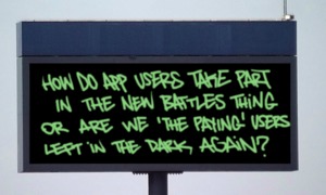 Currently it is not possible to save a bombing for a battle directly from the app. But there is a workaround: - go to website with a laptop or desktop computer - login - open battle and click „add your bombing“ - start to paint something (maybe just a colored background) and click save -> save online (don’t publish) - now open your app on your tablet/smartphone and go to your blackbook - click the edit button - if you are done click „save and publish“ We hope you can live with this workaround until we have time to integrate it in the app.